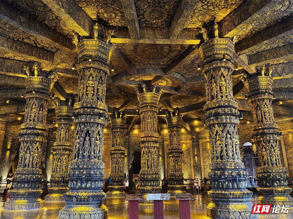 走进其中,仿佛踏入另一个时空:精雕的金柱撑起穹顶,光线拂过佛像低垂的眉目;古老木板上,鸟兽的羽翼与肌理仍在呼吸;大象雕塑静立,守护着岁月的纹路。这里有雕琢的力量,也有停驻的日常——长者坐在长椅上,笑容如展柜里的木纹一样温柔。艺术不只是陈列,更是一种呼吸,在这片土地上,缓慢、深刻、生生不息。(图文/马志)举报/反馈