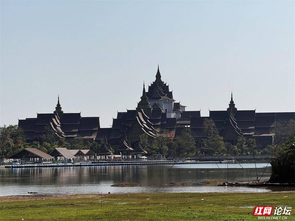 在时光的棱镜里,老挝艺术博物馆静静坐落——尖顶层叠,木色沉静,倒影在水中漾开一片静谧。